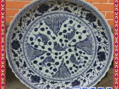 景德镇陶瓷厂家生产供应陶瓷大瓷盘,开业礼品陶瓷大瓷盘,乔迁礼品陶瓷大瓷盘,商务礼品陶瓷大瓷盘,手绘青花陶瓷大瓷盘,手绘粉彩陶瓷大瓷盘,装饰品陶瓷大瓷盘,景德镇高档陶瓷大瓷盘、赏盘、看盘、摆盘、挂盘。景德镇陶瓷瓷厂生产的陶瓷大瓷盘适用于商务办公场合、酒店大堂装饰、酒店餐厅巨型器皿、大堂隔间屏风、工地竣工纪念、名人肖像馆纪念等。景德镇大瓷盘常规规格在1米-1.5米,画面有虫鱼鸟兽,梅兰竹菊,莲花,植物,楼阁,牡丹,龙纹,庭院国画等。由于大瓷盘直径太大,通过模具制作是根本不可行的。因此制作这款陶瓷大瓷盘从泥胚的制作开始都是人工手工拉坯、修坯,待泥坯干燥后,用特殊的陶瓷颜料将精选的画面手绘到瓷盘上面。大瓷盘的烧制是经过1300摄制度的高温烧制而成,这一特性是的我们的陶瓷大瓷盘画面可永久保存、永不退染色。