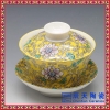 盖碗是一种上有盖、下有托,中有碗的茶具。又称“三才碗”、“三才杯”,盖为天、托为地、碗为人,暗含天地人和之意。在民间盖碗也指一种齐留海发型,因这种发型的留海像只碗盖在头上而得此名。“茶托”又称“茶船。盖碗茶,须用滚烫的开水冲一下碗,然后放入茶叶盛水加盖,沁茶的时间看茶叶数量和种类约为20秒至3分钟。在清雍正年间,盛行使用盖碗。而用来冲泡茶叶的盖碗,过去多用来冲泡花茶和铁观音,已经没有限制。使用时既可以用来泡茶后分饮,也可一人一套,当作茶杯直接饮茶用。制作盖碗的材质有瓷、紫砂、玻璃等,以各种花色的瓷盖碗为多。鲁迅先生在《喝茶》一文中曾这样写道:“喝好茶,是要用盖碗的。于是用盖碗。果然,泡了之后,色清而味甘,微香而小苦,确是好茶叶。”在众多的碗、盏、壶、杯之中,鲁迅先生为什么单单赞赏盖碗呢?其中,自有道理。