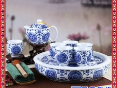 景德镇青花瓷茶具是沿用传统烧制工艺,精湛的绘画计划,将高档 瓷器文化结合高雅茶文化结合,将精神通过茶具的形式展示给广大青花瓷爱好者,青花瓷茶具主要有:盖碗、公杯、青花品杯、青花茶盘