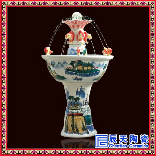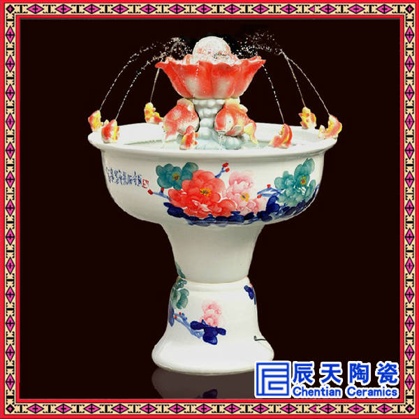 众所周知景德镇陶瓷工艺品精美绝伦,具有无与伦比的观赏性和收藏价值。陶瓷喷泉是少有的能把观赏性和实用性相结合的陶瓷工艺品,在装饰家居的同时能给室内增加湿度,制造负离子,净化空气实为难得。是单位开业、亲友乔迁、新居      落成之馈赠佳品。同时适用于办公室、大厅等公共场所的空气净化作用。
