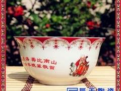 自古以来,中华民族就对长寿深深眷恋和寄托本公司专业为您定制各种类别,各种款式,各种器形的寿碗,寿桃碗,万寿无疆寿碗,松鹤延年寿碗  百寿图碗  吉祥如意寿碗, 中国红寿碗  帝王黄寿碗  寺庙捐赠礼品,是您贺(祝)寿的很好礼品,更是您体现孝道的很好方式。