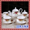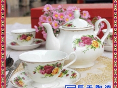 陶瓷咖啡具包含一壶、六杯、六碟、一糖罐、一奶罐